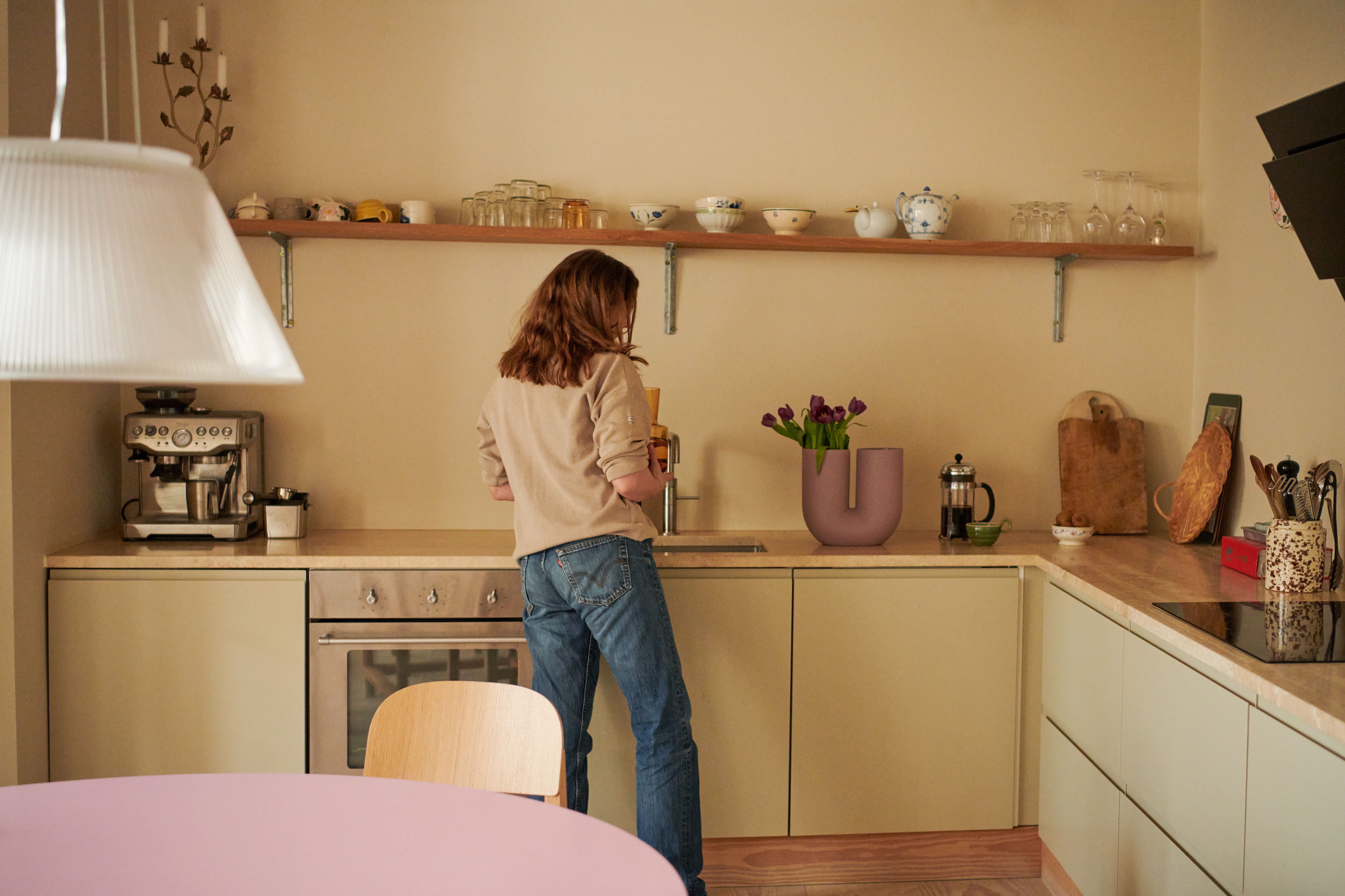 Katrine lives in a former factory with her husband, Jonas, and their two children — three-year-old Hubert and eight-month-old Teddy. They’ve made a few changes to it since they moved in, and now it’s a space for light, comfort and ease — full of her favorite things, and her boys’ books and toys. All of which is inspiring her creative ventures.