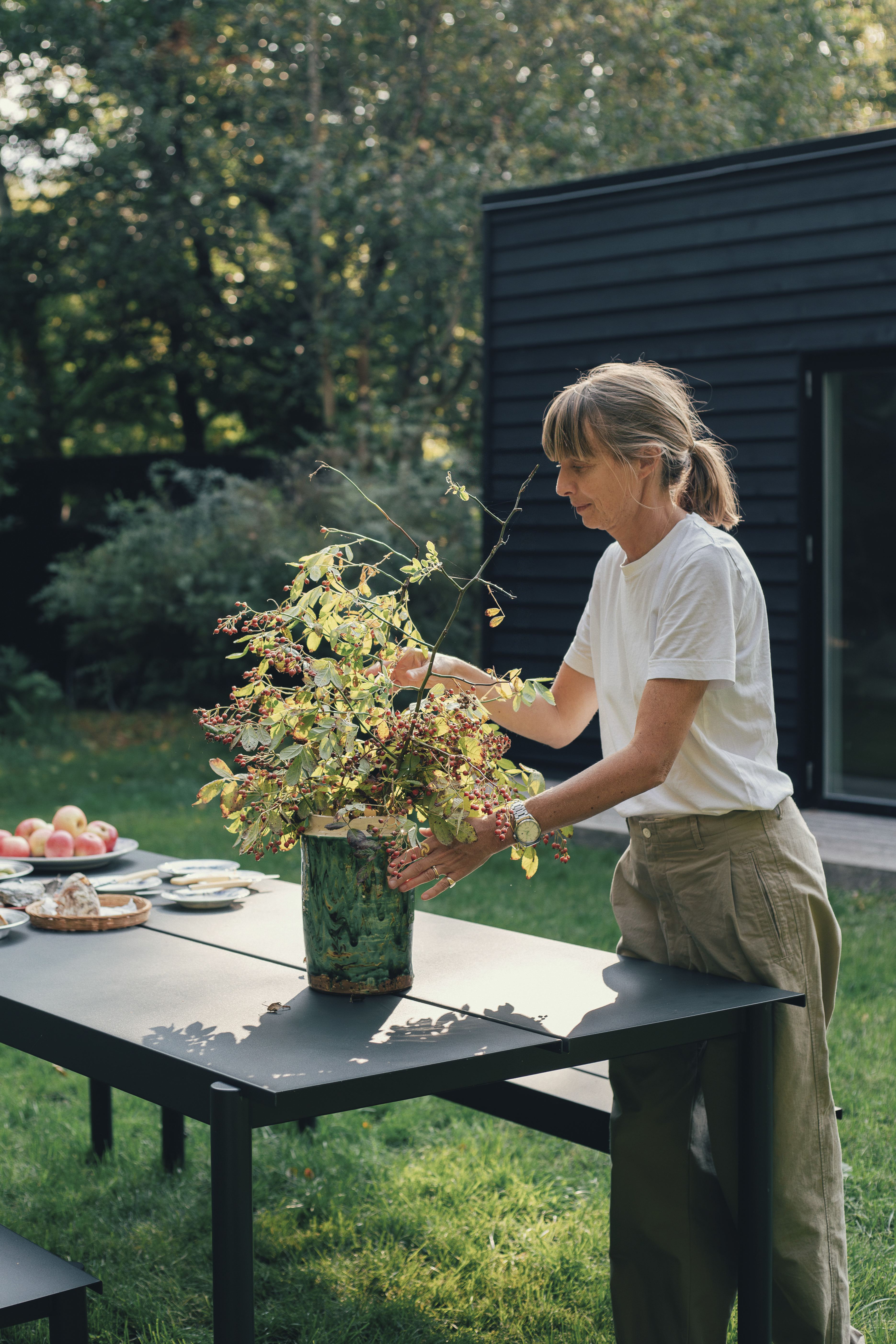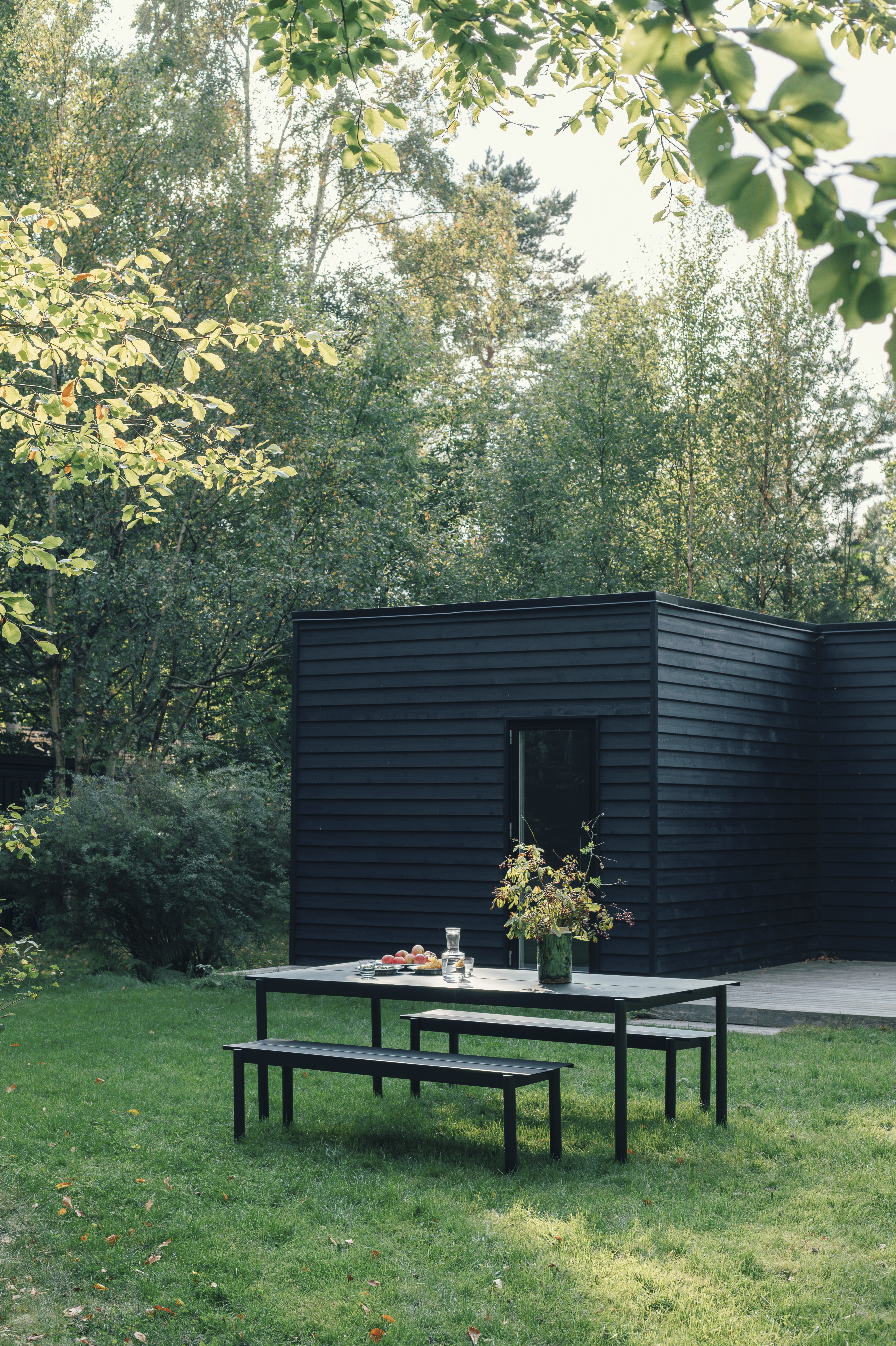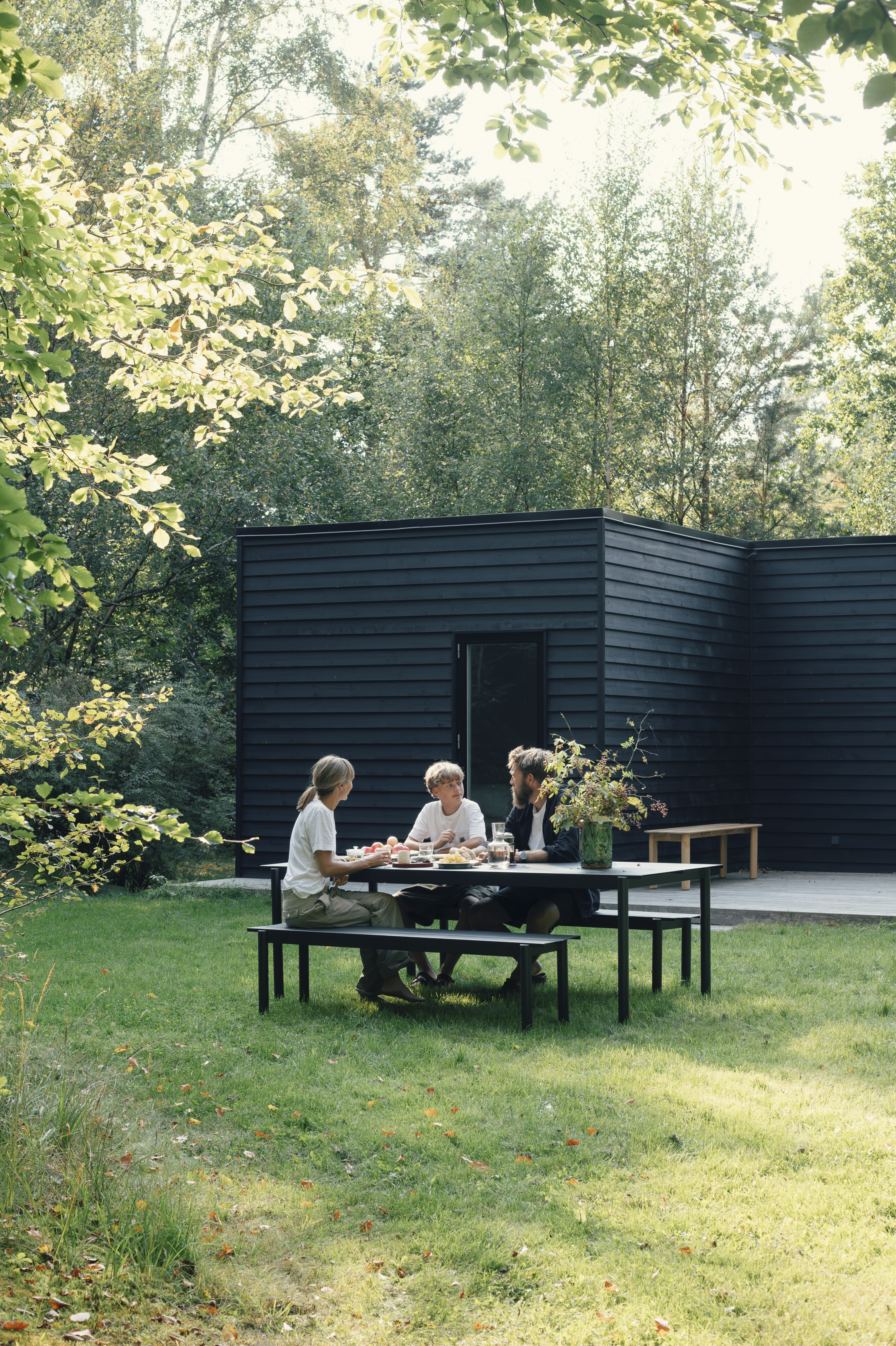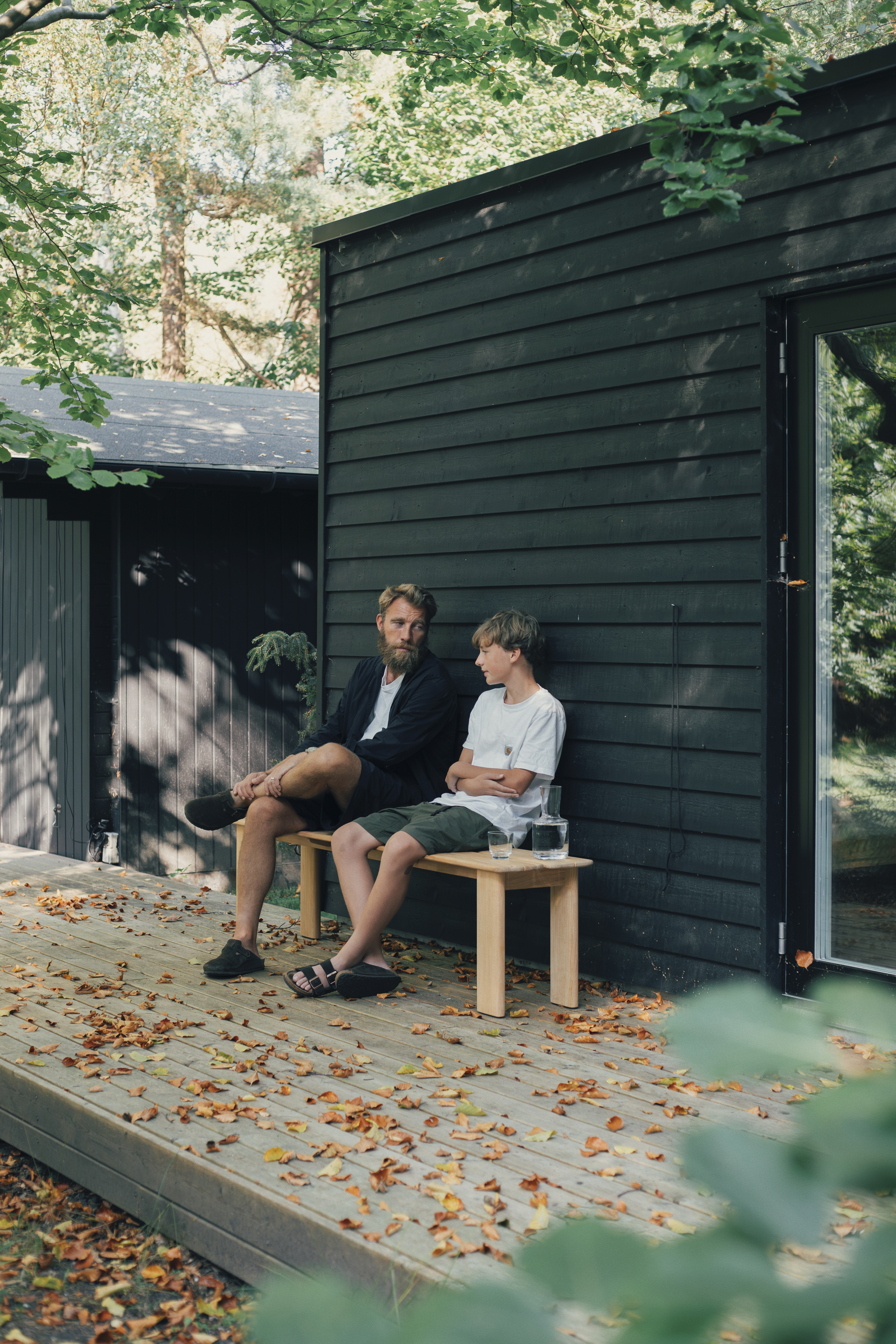 The house itself was designed with straightforwardness in mind, a low, black wooden structure with clean lines and a flat roof, built with a carpenter to the Karstad’s own drawings. It sits among the trees, unassuming and quiet, much like the life they've built around it.