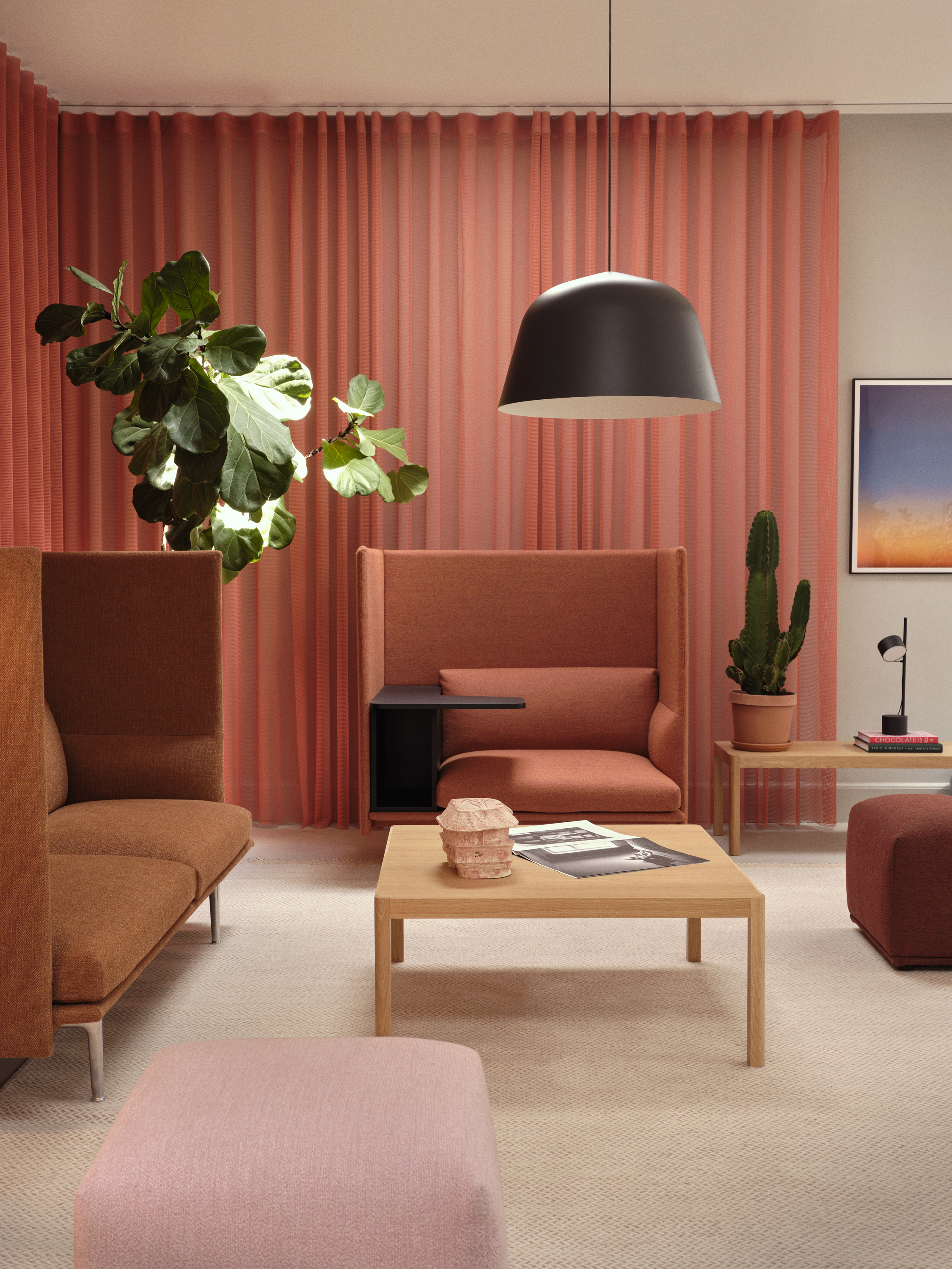 Nestled among the city’s rooftops, the Muuto Courtyard perfectly captured the essence of biophilia, emphasizing the positive effects of nature and natural materials on our well-being. This outdoor space offered a peaceful refuge from the city’s hustle and featured an exclusive preview of Settle, our new outdoor lounge collection by Norwegian designers Anderssen & Voll. Guests enjoyed moments of tranquility, creating a serene environment for reflection and connection.