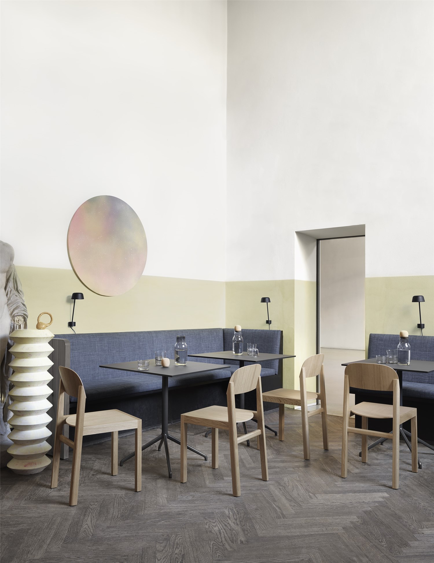 “Our idea for the Still Café Table was to create a design with an apparent function that would fit intuitively into any space without making much visual noise. With its elegant four-legged base across various heights, the design is stripped to its essentials, complemented by the angled edges of its table top”, tells Iskos-Berlin, a Copenhagen-based design duo that has made waves within furniture, industrial and graphic design with products being exhibited at numerous museums around the world, including MoMa and the Danish Design Museum.