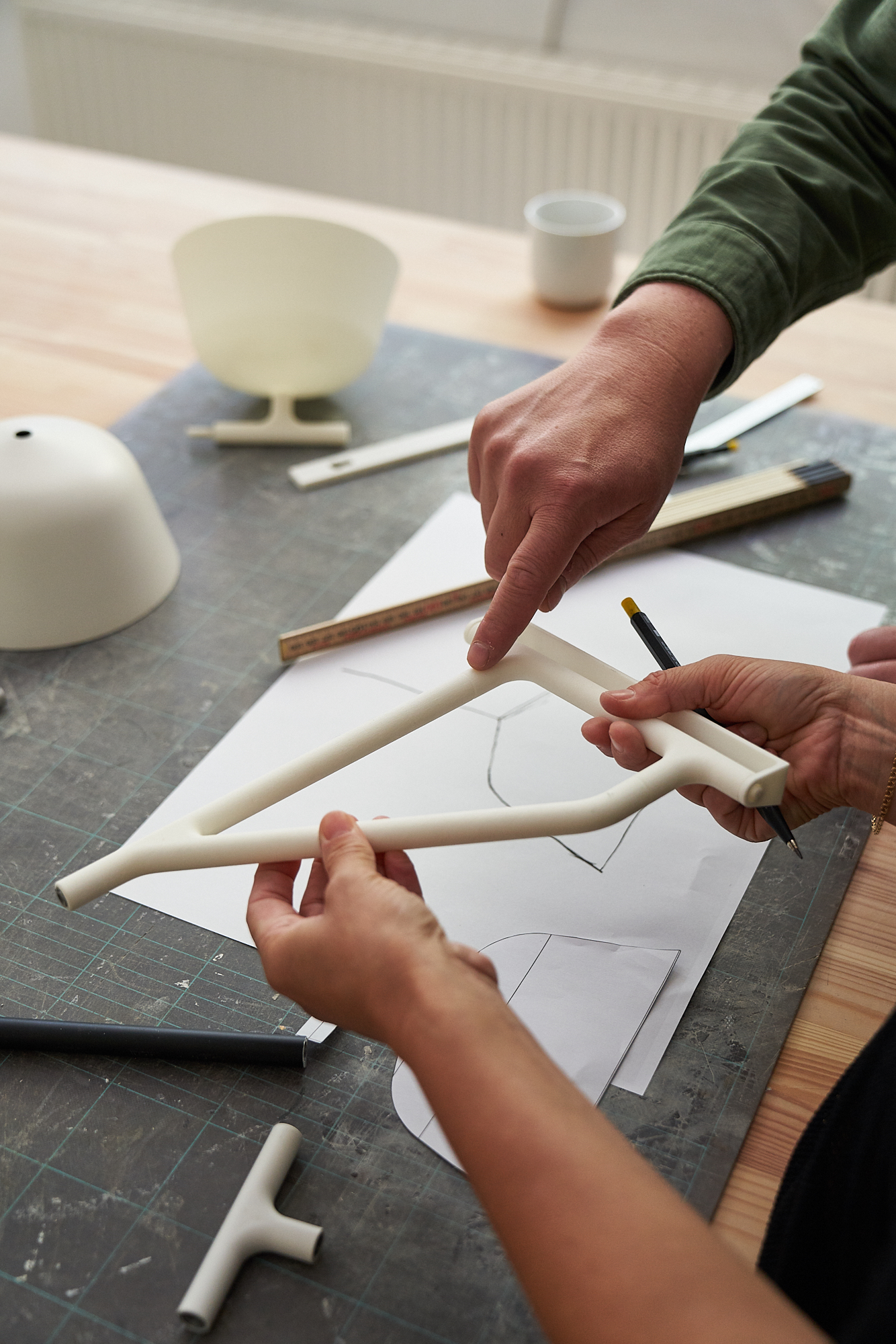 “Starting by turning the geometry of the design into a three-dimensional form, we wanted to find a silhouette that could work in multiple spatial contexts — whether it be in any room of a home, office, commercial space, or hospitality project,” adds Gustafson.