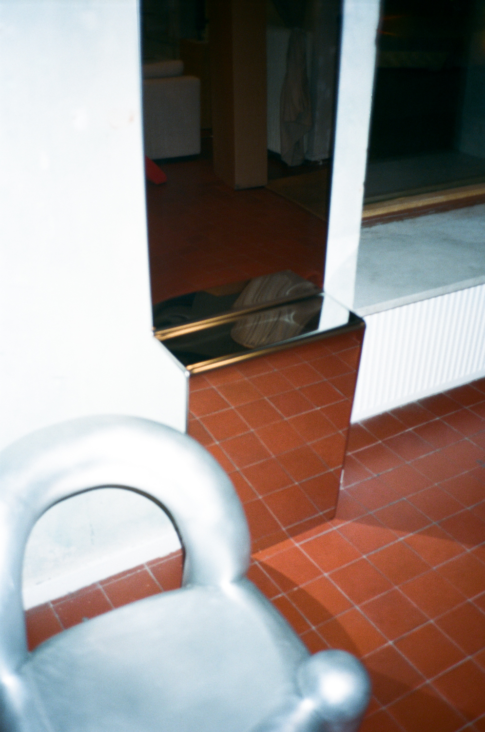 Gustav Winsth “Scale was key. By extending from the floor, it becomes part of the room’s architecture rather than just an object applied to it. It functions as a mirror, but the fold introduces a spatial quality that shifts the focus beyond pure utility,” he explains.