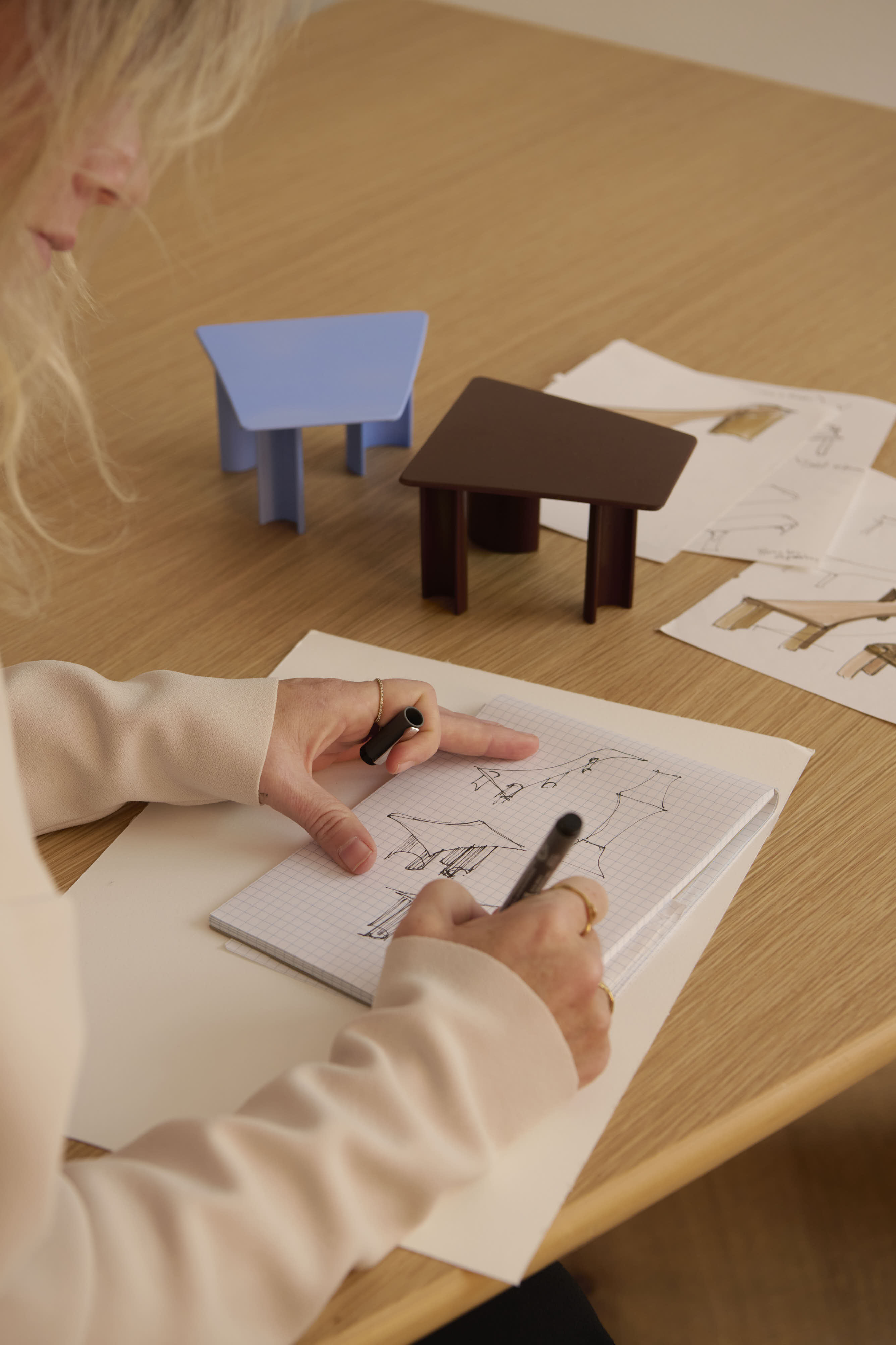 Trained at the Royal Danish Academy in Copenhagen, Maria Bruun established her studio in 2012. From the outset, her work moved between gallery pieces and industrial production — less as a strategy, more as a reflection of her curiosity. That duality still defines her practice today.