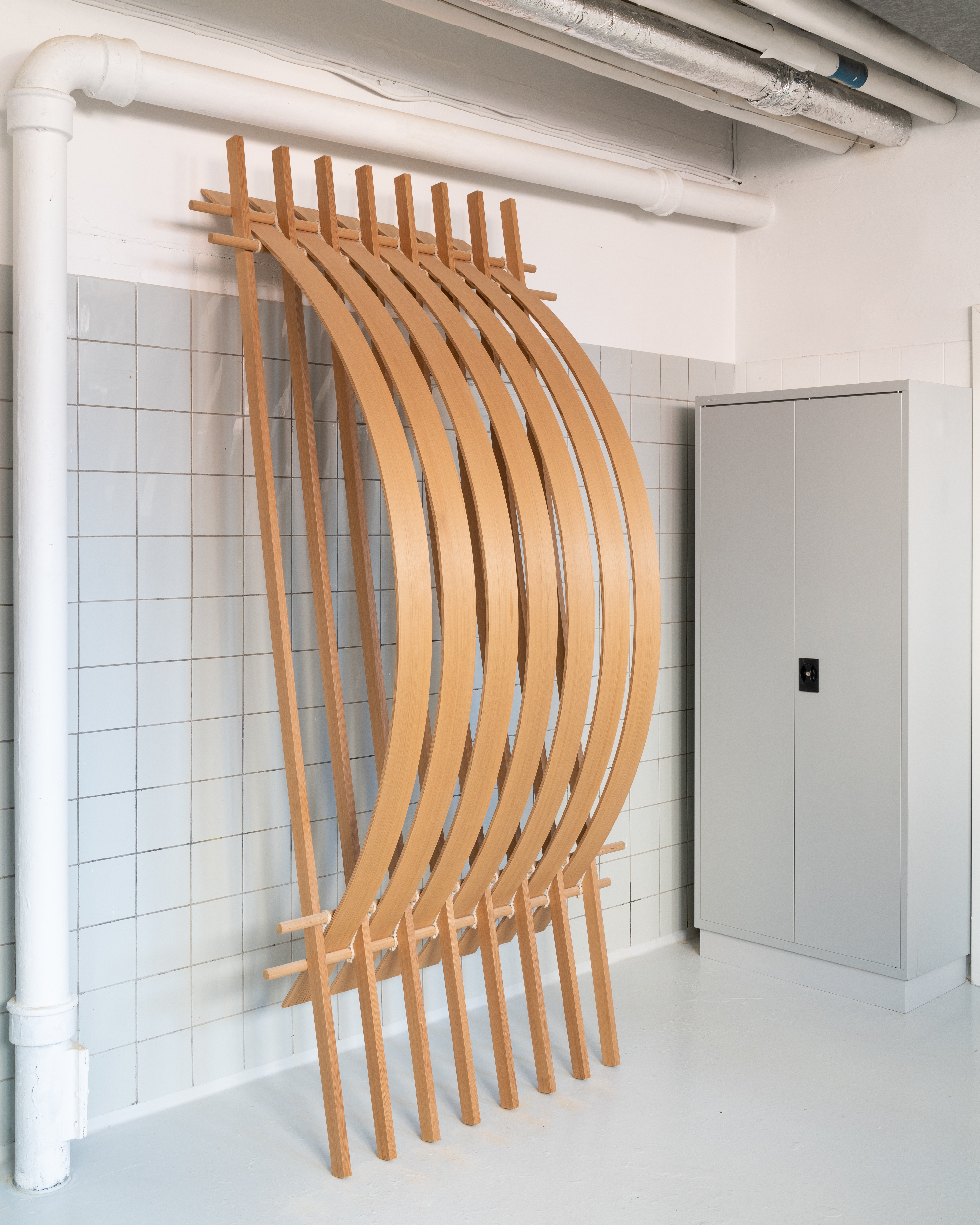 When viewing the duo’s body of work at a glance, one is instantaneously struck by a sense of simplicity yet in a highly experimental and advanced way, paired with an inherent allure for traditional craftsmanship. Speaking on that, Frederik says: “Our work rests highly on practical experimentation that encompasses studies in static principles and tectonic systems that we want to explore from both an artistic and functional perspective. We strive for our work to reflect our curious and playful approach to our craft, often leading to us pushing the static and material properties to the furthest.” Pondering upon how this influences their process, Gustav notes: “As opposed to pursuing a specific function, we instead revolve around the idea of concepts that are at once flexible in their function, scale and context. This makes for work that is cross-disciplinary and touches the areas of small-scale architecture, crafts and design.”