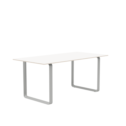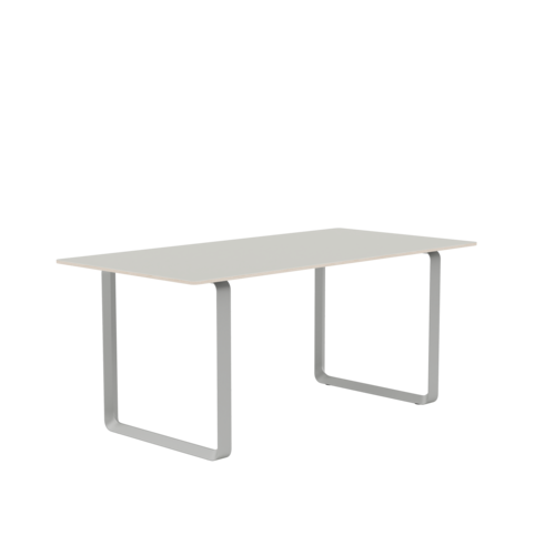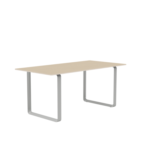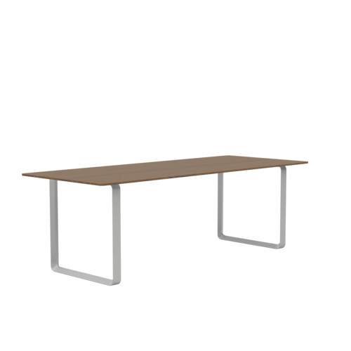 Tabletop in plywood with lacquered oak veneer surface, Black and Grey version in plywood with linoleum surface, White version in plywood with laminate surface (HPL). Solid Oak and Solid Smoked Oak tabletop in FSC™-certified (FSC-C028824) oak. Frame in powder-coated aluminum.