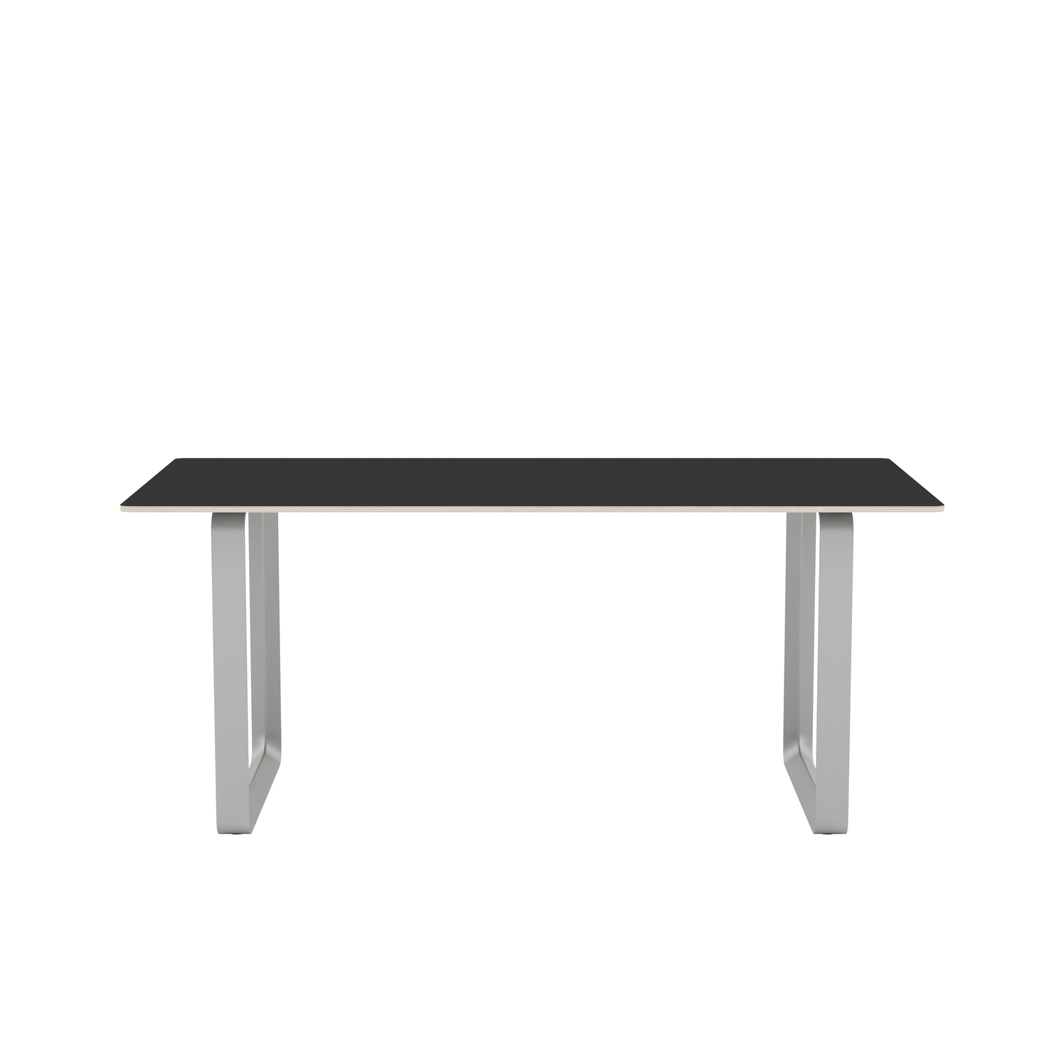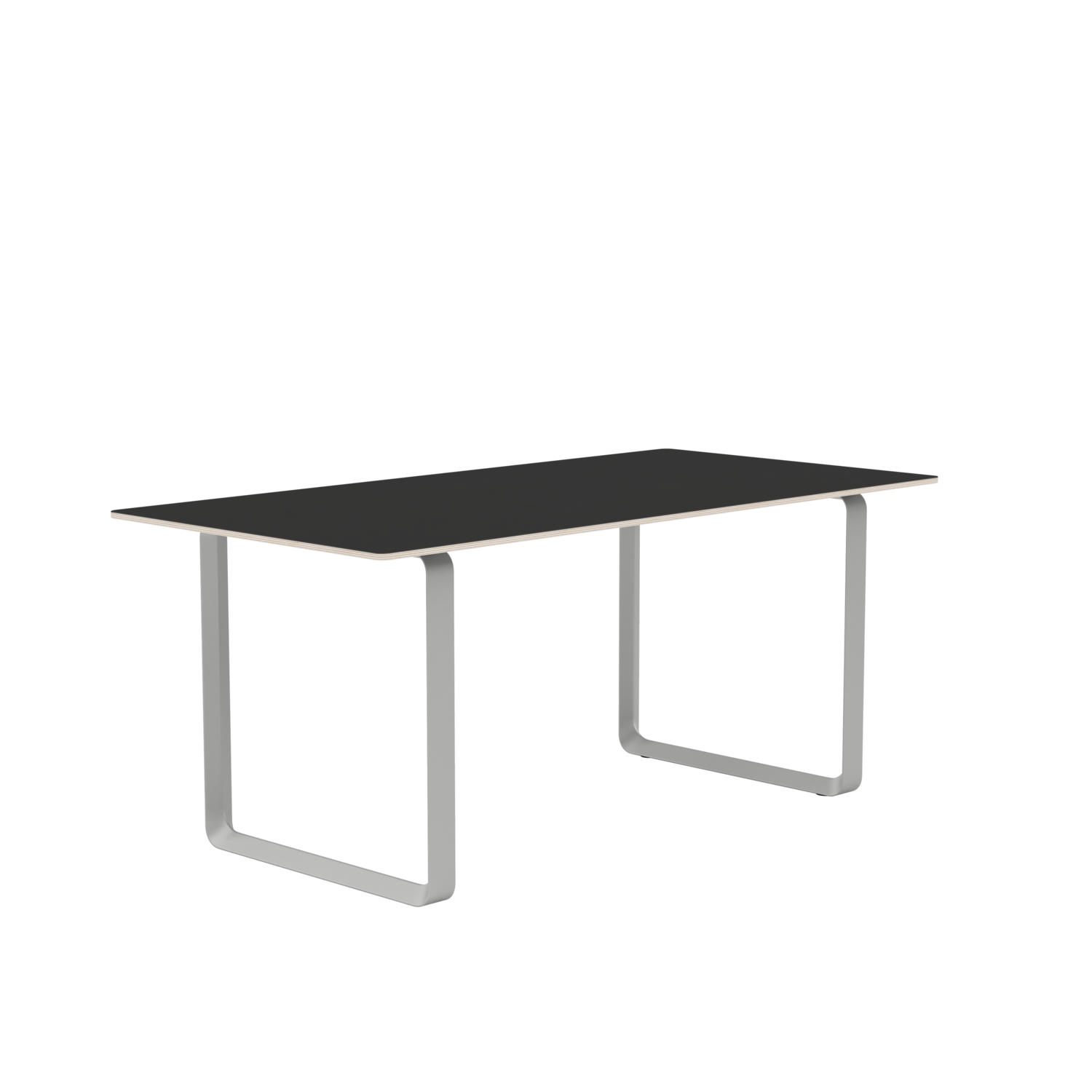 Tabletop in plywood with lacquered oak veneer surface, Black and Grey version in plywood with linoleum surface, White version in plywood with laminate surface (HPL). Solid Oak and Solid Smoked Oak tabletop in FSC™-certified (FSC-C028824) oak. Frame in powder-coated aluminum.