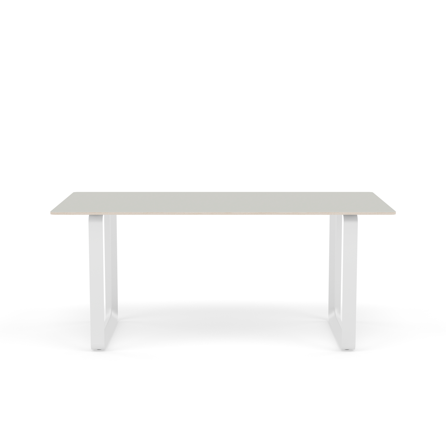 Tabletop in plywood with lacquered oak veneer surface, Black and Grey version in plywood with linoleum surface, White version in plywood with laminate surface (HPL). Solid Oak and Solid Smoked Oak tabletop in FSC™-certified (FSC-C028824) oak. Frame in powder-coated aluminum.