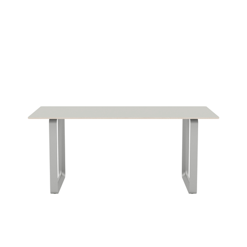 Tabletop in plywood with lacquered oak veneer surface, Black and Grey version in plywood with linoleum surface, White version in plywood with laminate surface (HPL). Solid Oak and Solid Smoked Oak tabletop in FSC™-certified (FSC-C028824) oak. Frame in powder-coated aluminum.