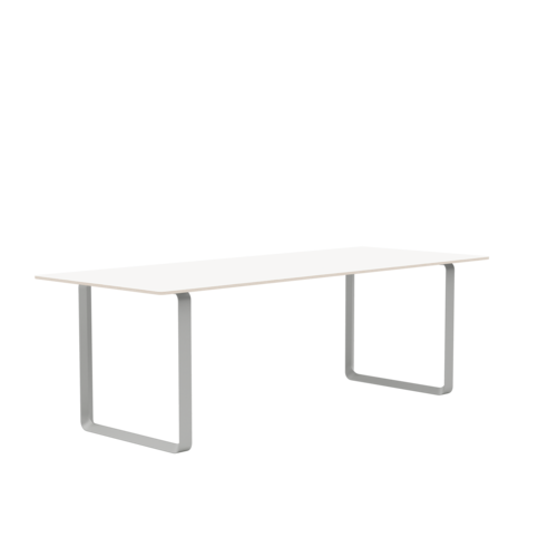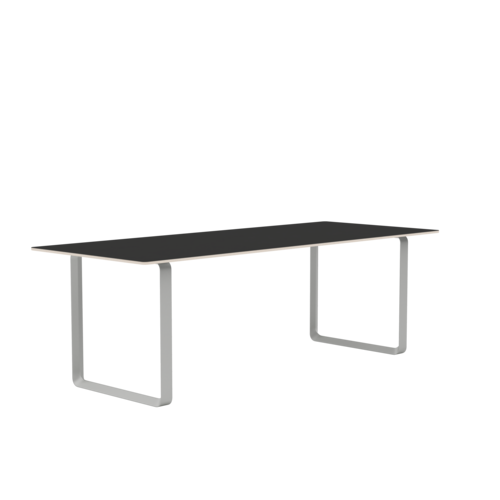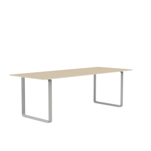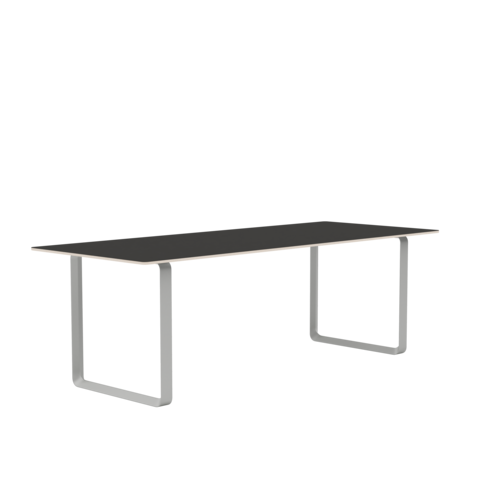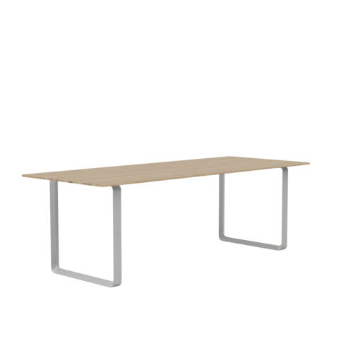 Tabletop in plywood with lacquered oak veneer surface, Black and Grey version in plywood with linoleum surface, White version in plywood with laminate surface (HPL). Solid Oak and Solid Smoked Oak tabletop in FSC™-certified (FSC-C028824) oak. Frame in powder-coated aluminum.