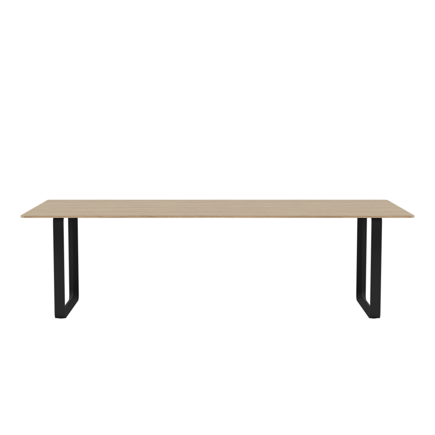 Tabletop in plywood with lacquered oak veneer surface, Black and Grey version in plywood with linoleum surface, White version in plywood with laminate surface (HPL). Solid Oak and Solid Smoked Oak tabletop in FSC™-certified (FSC-C028824) oak. Frame in powder-coated aluminum.