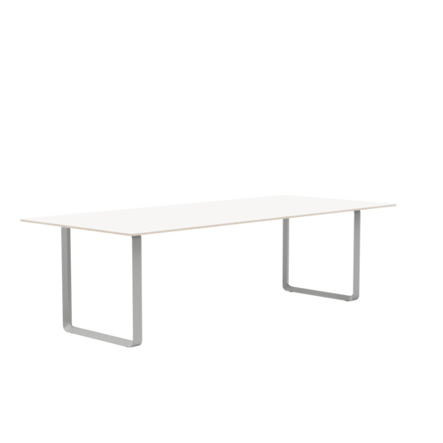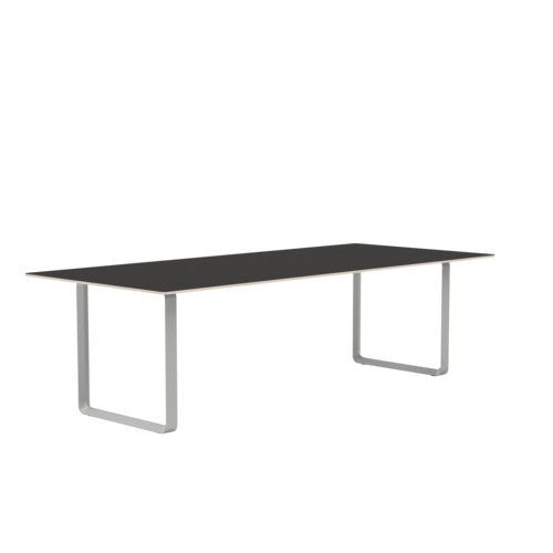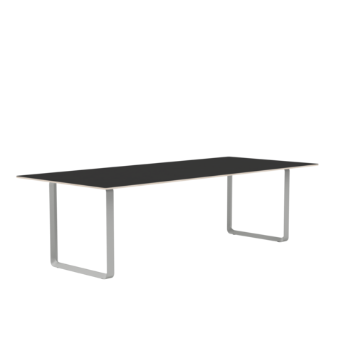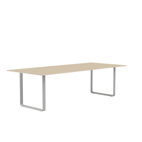 Tabletop in plywood with lacquered oak veneer surface, Black and Grey version in plywood with linoleum surface, White version in plywood with laminate surface (HPL). Solid Oak and Solid Smoked Oak tabletop in FSC™-certified (FSC-C028824) oak. Frame in powder-coated aluminum.