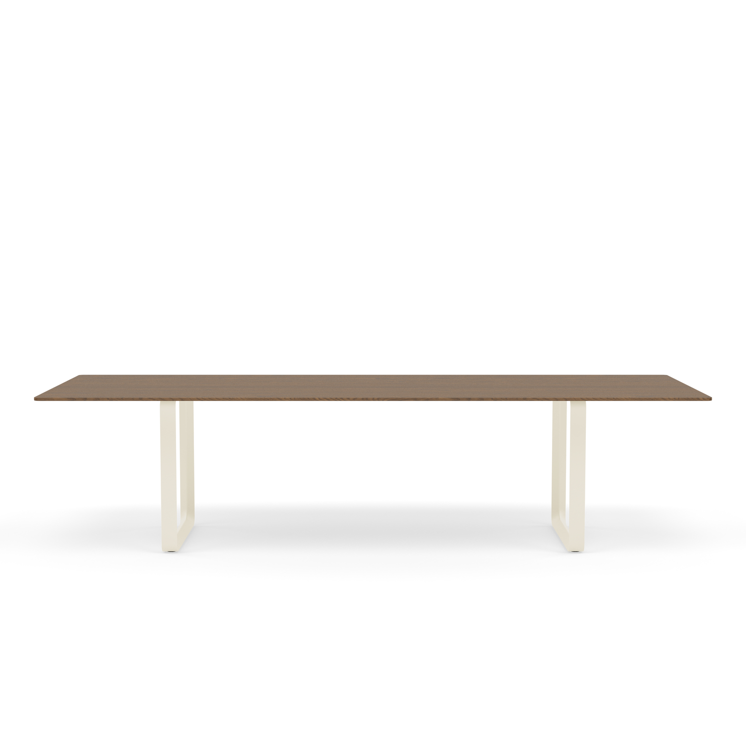 Tabletop in plywood with lacquered oak veneer surface, Black and Grey version in plywood with linoleum surface, White version in plywood with laminate surface (HPL). Solid Oak and Solid Smoked Oak tabletop in FSC™-certified (FSC-C028824) oak. Frame in powder-coated aluminum.