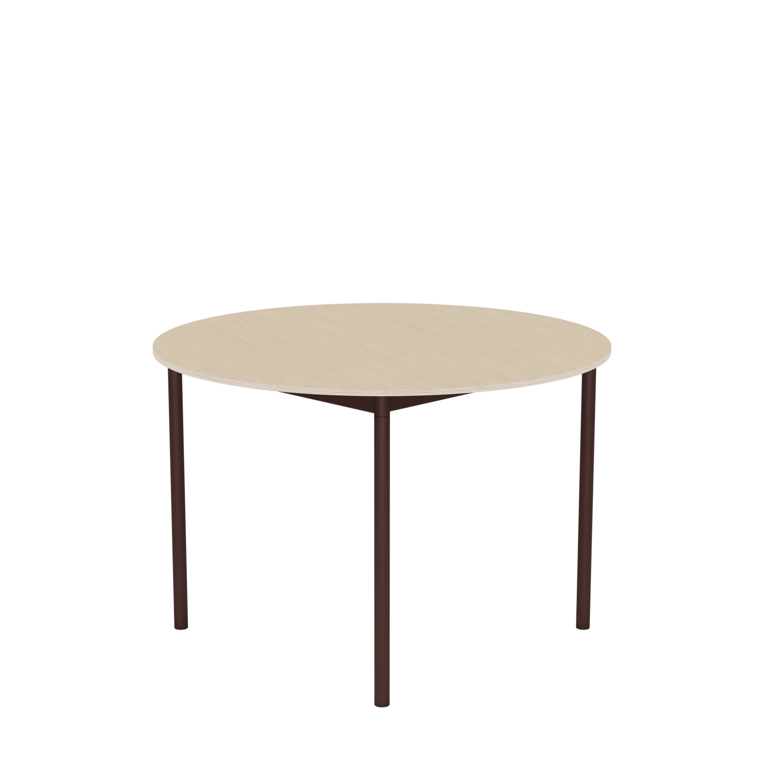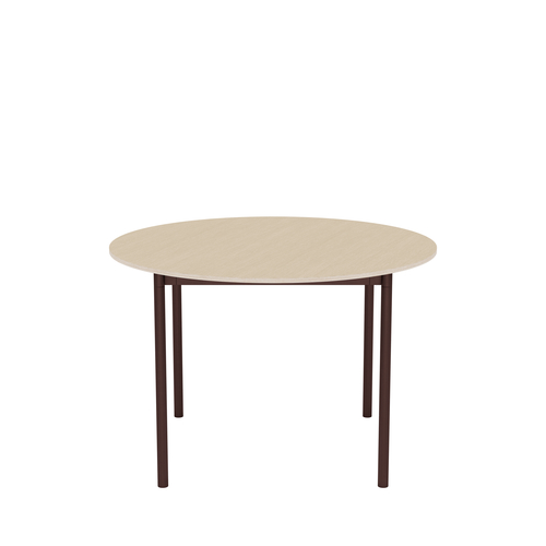 The tabletop is made of plywood with either laminate, linoleum, or oak veneer surface and a water-based lacquer. Plywood or ABS edges. Frame and legs in powder-coated aluminum.
