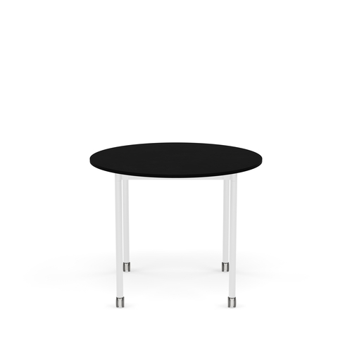 The tabletop is made of plywood with either laminate, linoleum, or oak veneer surface and a water-based lacquer. Plywood or ABS edges. Frame and legs in powder-coated aluminum.