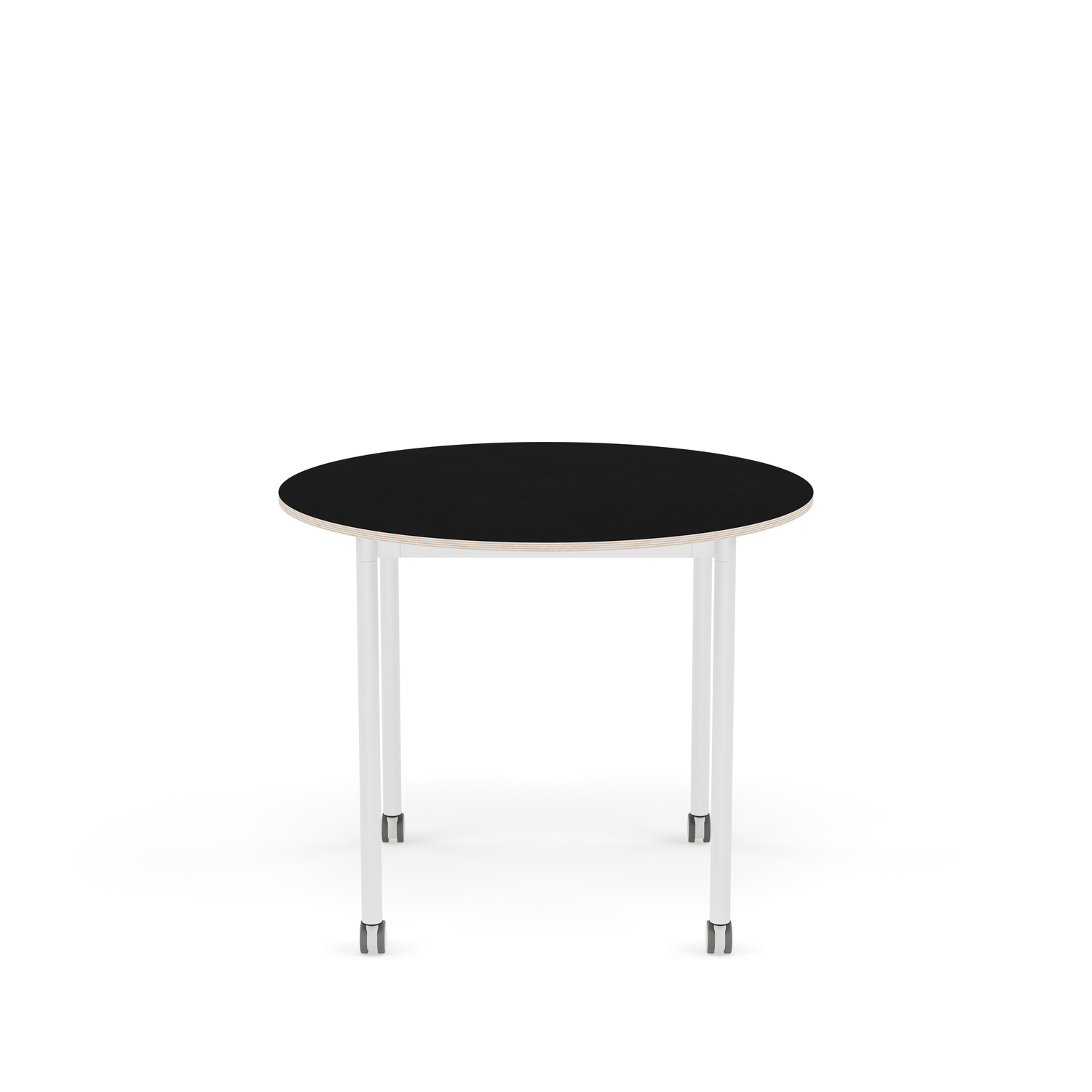 The tabletop is made of plywood with either laminate, linoleum, or oak veneer surface and a water-based lacquer. Plywood or ABS edges. Frame and legs in powder-coated aluminum.