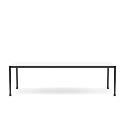 Simple and elegant lines, joined by the functionality of castors. Frame is made from extruded aluminum, painted with an acrylic paint initially developed for outdoor interiors and building facades. Organize and manage cords and wires with our Cable Management. Our Power Outlet can be added to the Base Table.