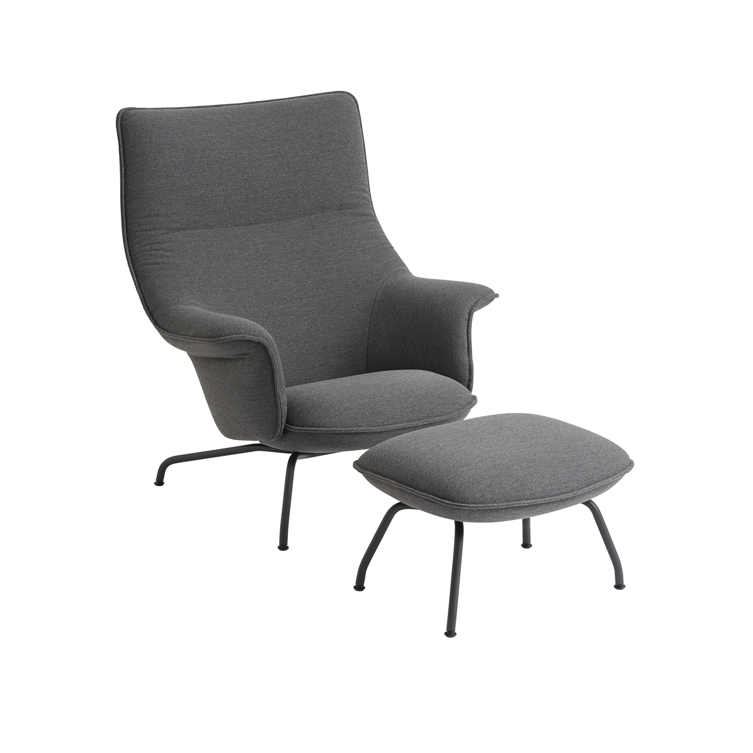 The Doze Lounge Chair & Ottoman are made from metal, foam, and wadding and finished with textile, imitation leather, or leather upholstery. The leather comes from selected premium leather suppliers.