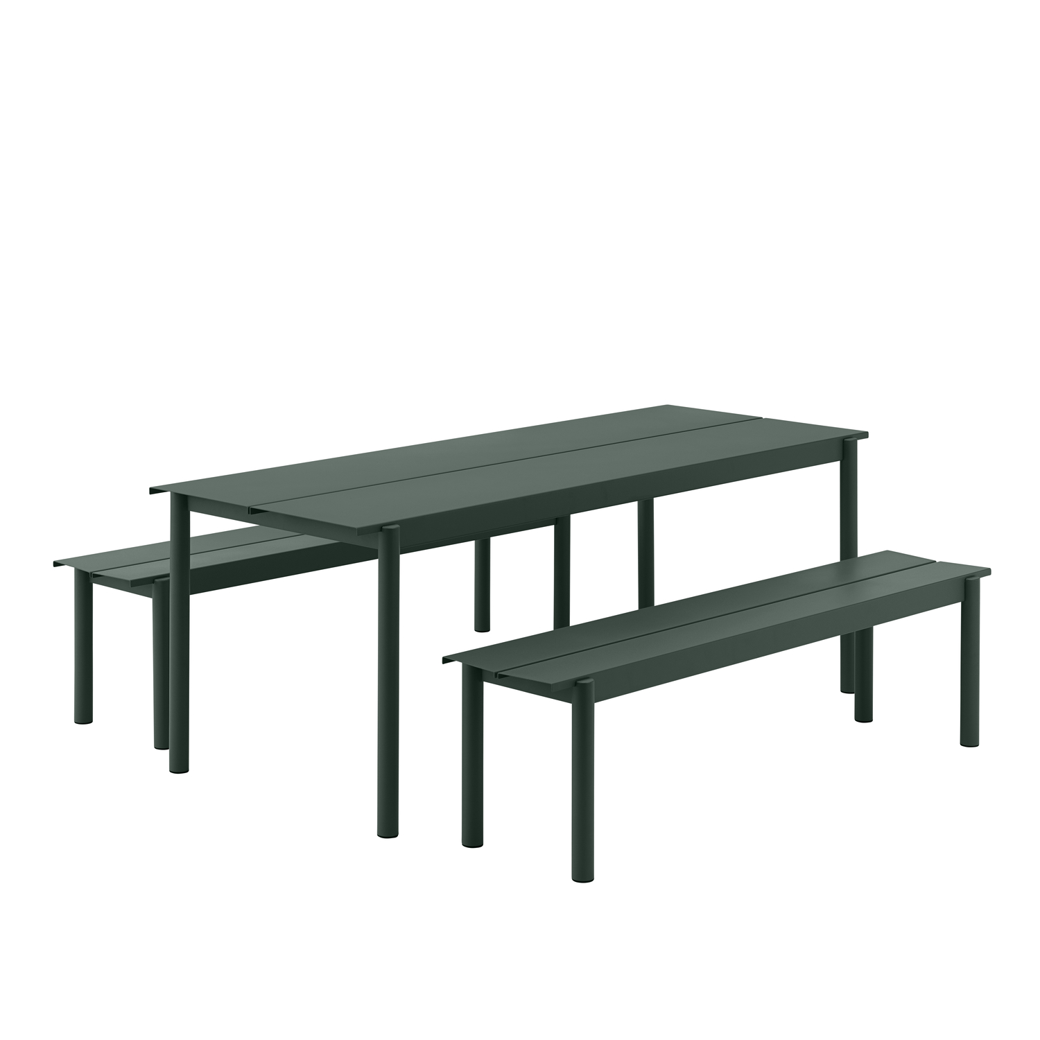 The Linear Steel Table brings new perspectives to modern outdoor furniture through its straight lines alongside the folded edges, halfcircular intersecting legs and small spacing for easy removal of water. Kept visually clean for long-lasting aesthetics, the Linear Steel Table finds its distinct character through subtle detailing and a simple expression, allowing for it to complement any outdoor setting. Pair the table with the Linear Steel Bench, designed in proportions that allow for it to slide easily under the table.