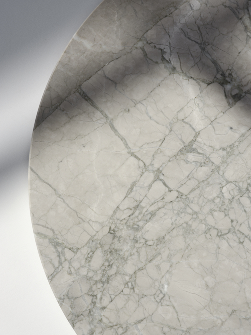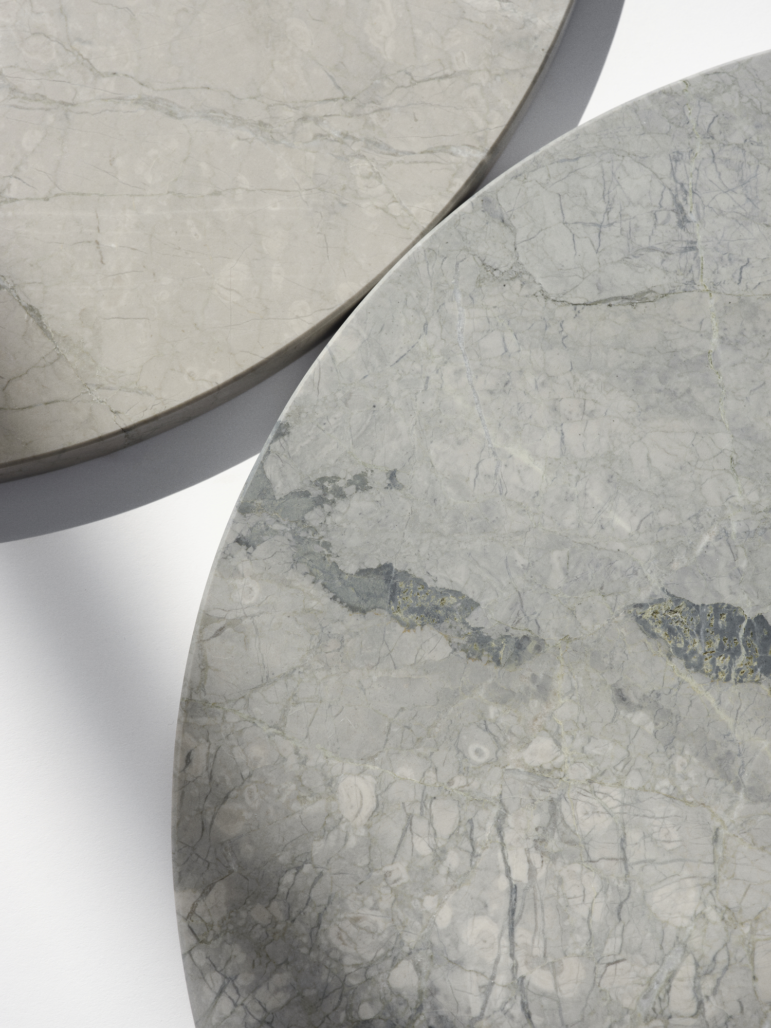 A natural focal point of the home, the Midst Table is a generous, round dining table where friends and family gather—with room to welcome more. Its refined silhouette is simple yet characteristic, enhanced by distinct detailing and contrasting materiality—matte solid oak, linoleum, or honed marble on a monolithic base made of spun steel with a durable high-gloss finish.