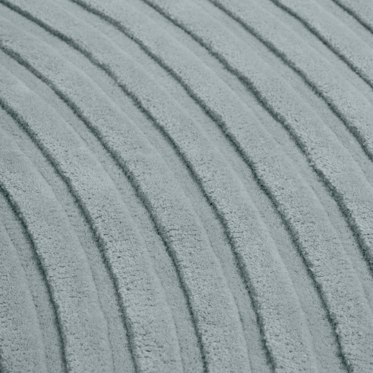 Relevo is a soft rug with a distinctly sculptural quality. Its striking graphic pattern is produced by trimming the tufted wool in different levels, thereby creating an eye-catching shadowplay that gives a sense of being two-tone rather than monochrome. The rug’s single rounded corner gives it a unique character, a dynamic expression in any setting.