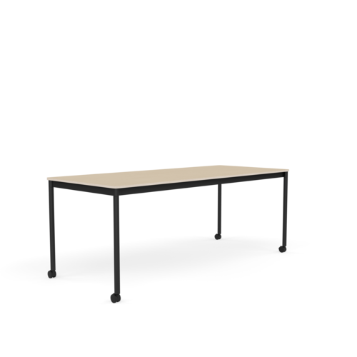 The tabletop is made of plywood with either laminate, linoleum, or oak veneer surface and a water-based lacquer. Plywood or ABS edges. Frame and legs in powder-coated aluminum.