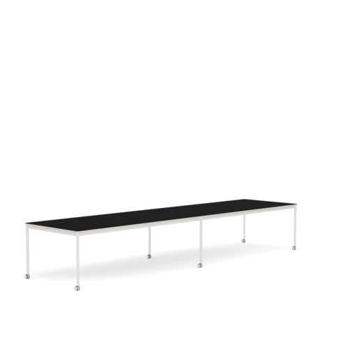Simple and elegant lines, joined by the functionality of castors. Frame is made from extruded aluminum, painted with an acrylic paint initially developed for outdoor interiors and building facades. Organize and manage cords and wires with our Cable Management. Our Power Outlet can be added to the Base Table.