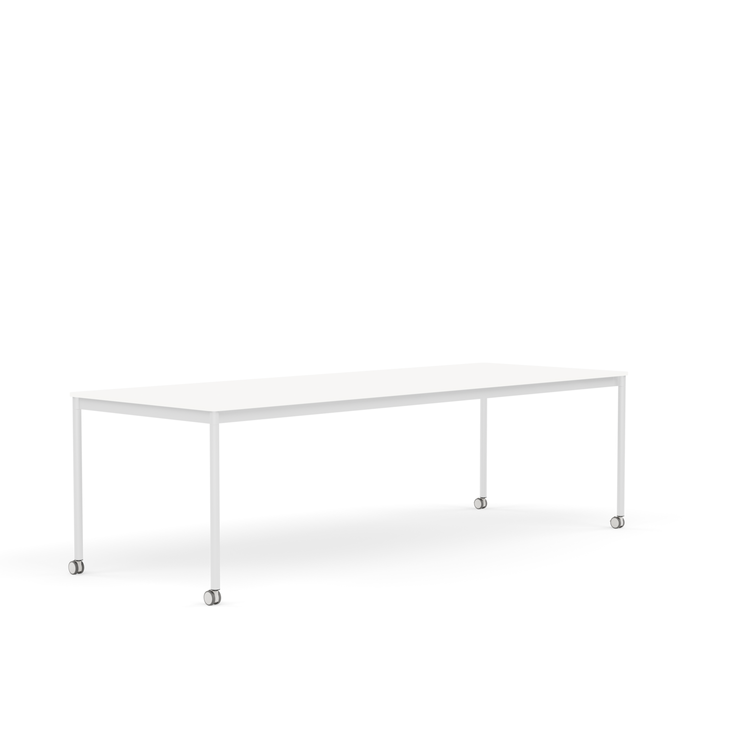 Simple and elegant lines, joined by the functionality of castors. Frame is made from extruded aluminum, painted with an acrylic paint initially developed for outdoor interiors and building facades. Organize and manage cords and wires with our Cable Management. Our Power Outlet can be added to the Base Table.