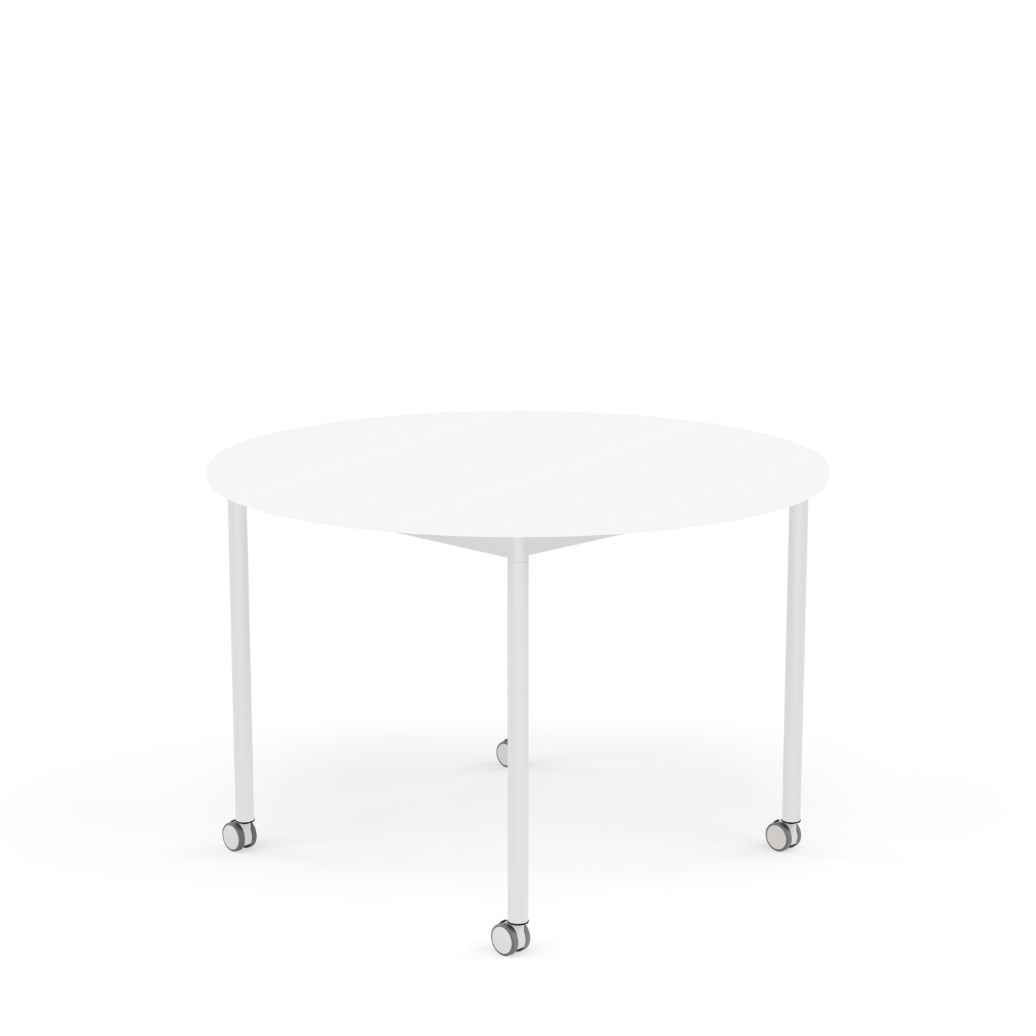 The tabletop is made of plywood with either laminate, linoleum, or oak veneer surface and a water-based lacquer. Plywood or ABS edges. Frame and legs in powder-coated aluminum.