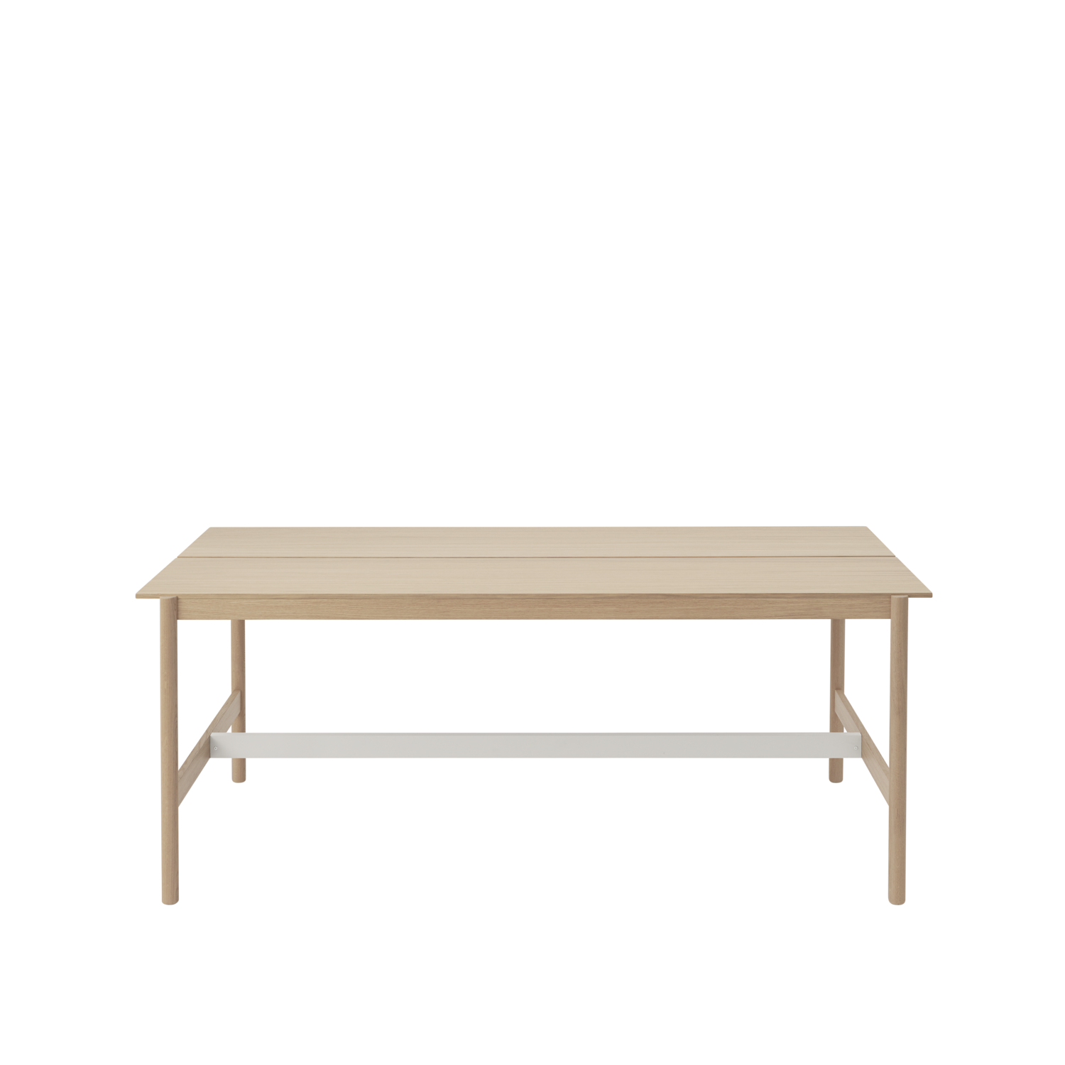 The Linear System High Table is designed for flexibility and spontaneity. Ideal for short meetings, intimate work settings, bar, dining, and kitchen areas. The table's legs, shaped into half-circles and seamlessly joined with the tabletop, create a light and airy appearance. A metal stretcher bar underneath adds stability and refines its overall design.