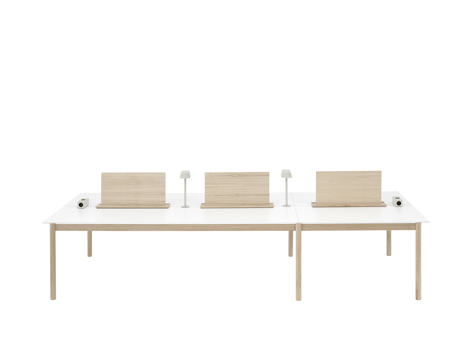 The Linear System Screen creates intimate atmospheres without shielding one from the outside world alongside the subtle functionality of its integrated feet on both sides for storing smaller objects. Can be used either freestanding or mounted onto the Linear System Series.