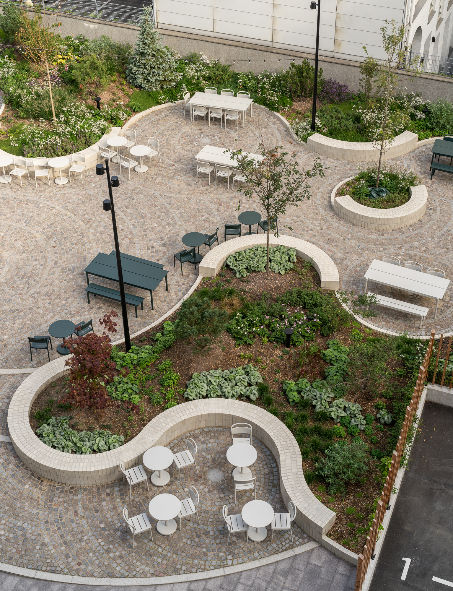 To bring this vision to life, Ines Bukhardt, internal architect at Jeudan, and Daniel Braat, landscape architect at COBE, collaborated to create a space that balances both functionality and calm. It serves as a spot for rest, informal meetings, and moments of reflection—a place to pause and step away from the daily grind. The result is a serene environment that offers a much-needed escape from the city’s fast pace.